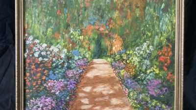 Colourful Garden path scene by Charlee Shannon – Oil on Board Painting