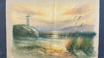 Lighthouse Scene at Sunset – Oil on Canvas Painting