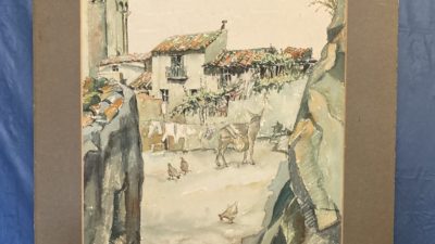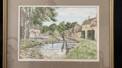 Village Footbridge over a stream by Jill Penford Watercolour painting