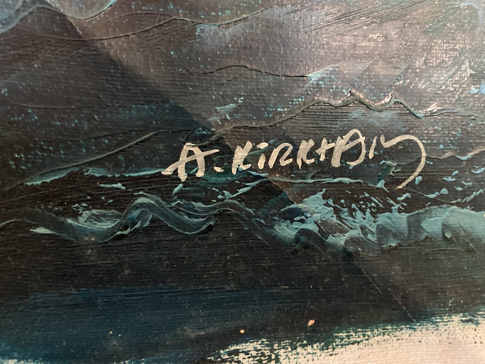 Behold the mighty ocean as its majesty and beauty radiate off the canvas. From the wonderful texture of the churn and surf to the artful blending of shades within the water conferring a masterful sense of depth and place, this scene welcomes you into a highly dramatic moment as you follow the seagulls into that unknown horizon.