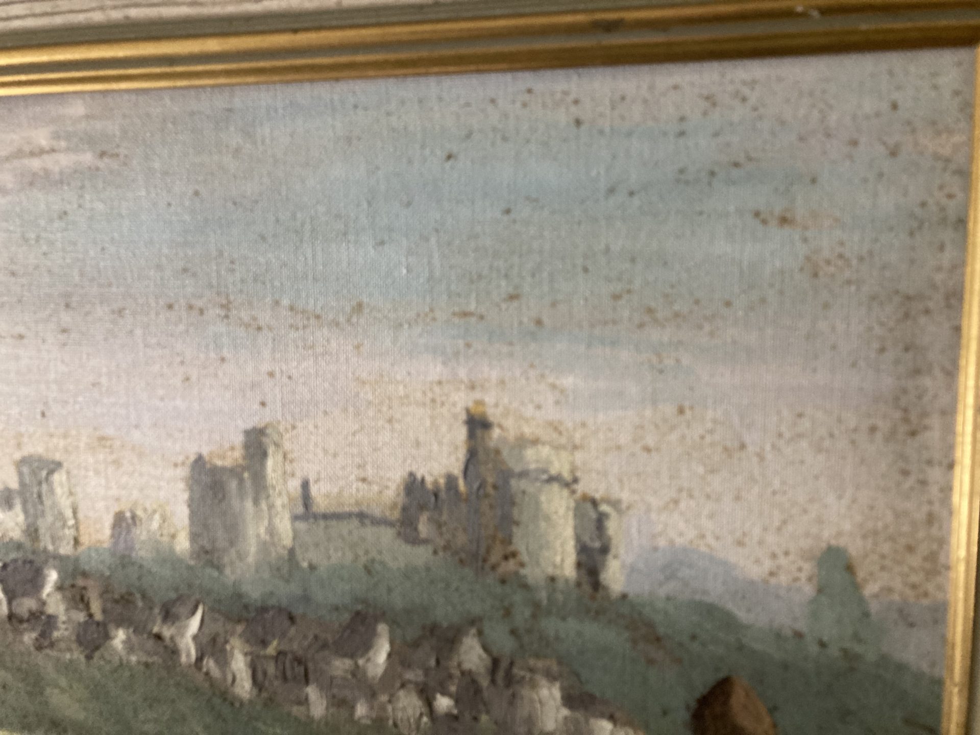 An ox quietly grazes in a field overlooked by a cathedral town.