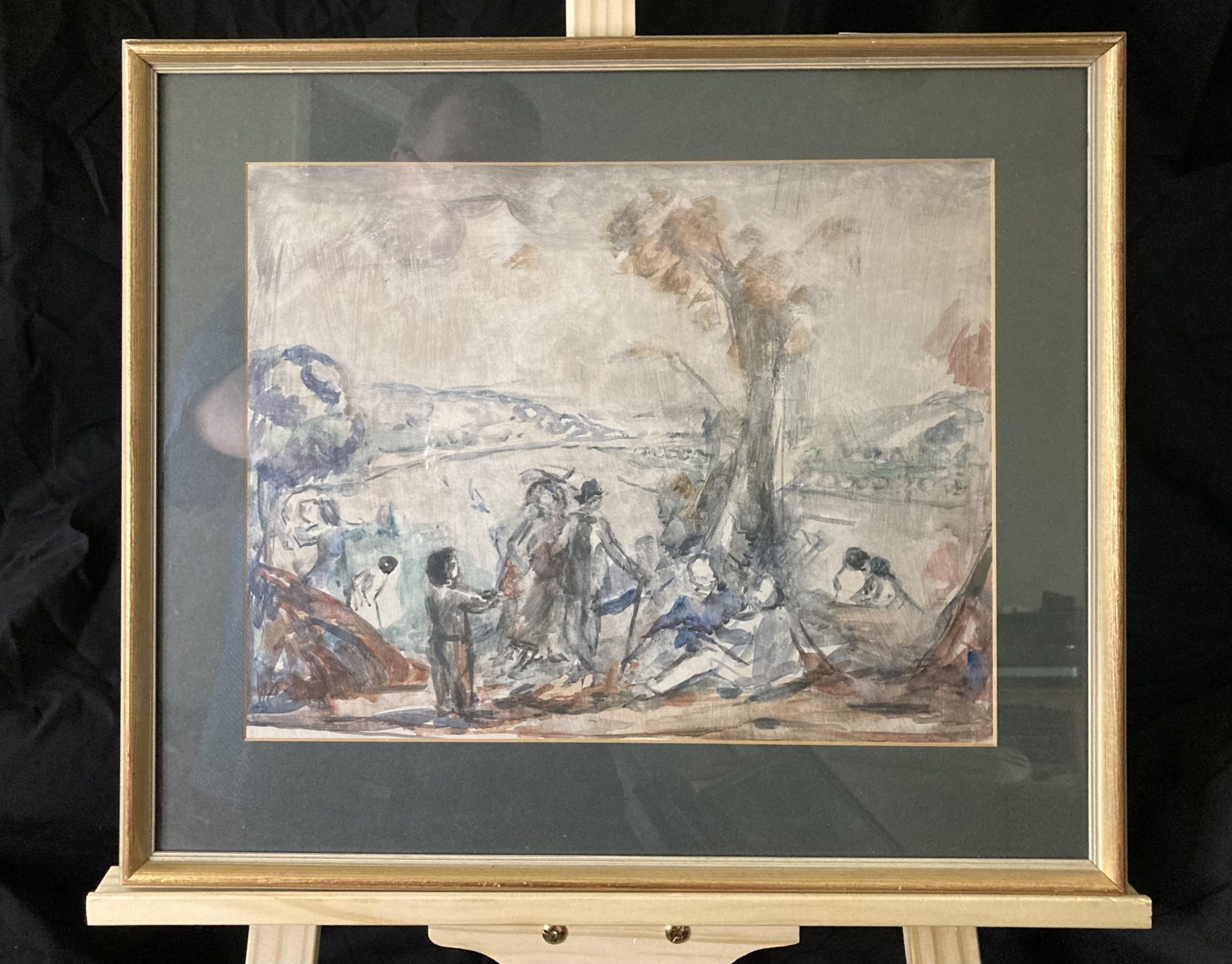 A busy afternoon in a prominent park is finely captured here in watercolour.