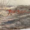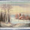 A beautifully photogenic scene capturing the view from a wintery rural lane. With the picket fences and timber-frame farm building capped in snow alongside the well-worn lane to the front and the blanketed field in the mid-ground, this elegant piece offers a detailed and idyllic viewpoint into the year’s colder months. Of particular note is the town in near-distance, depicted via hazy tones of greys and light blacks that melt seamlessly into the equally hazy pastel sky presiding above.
