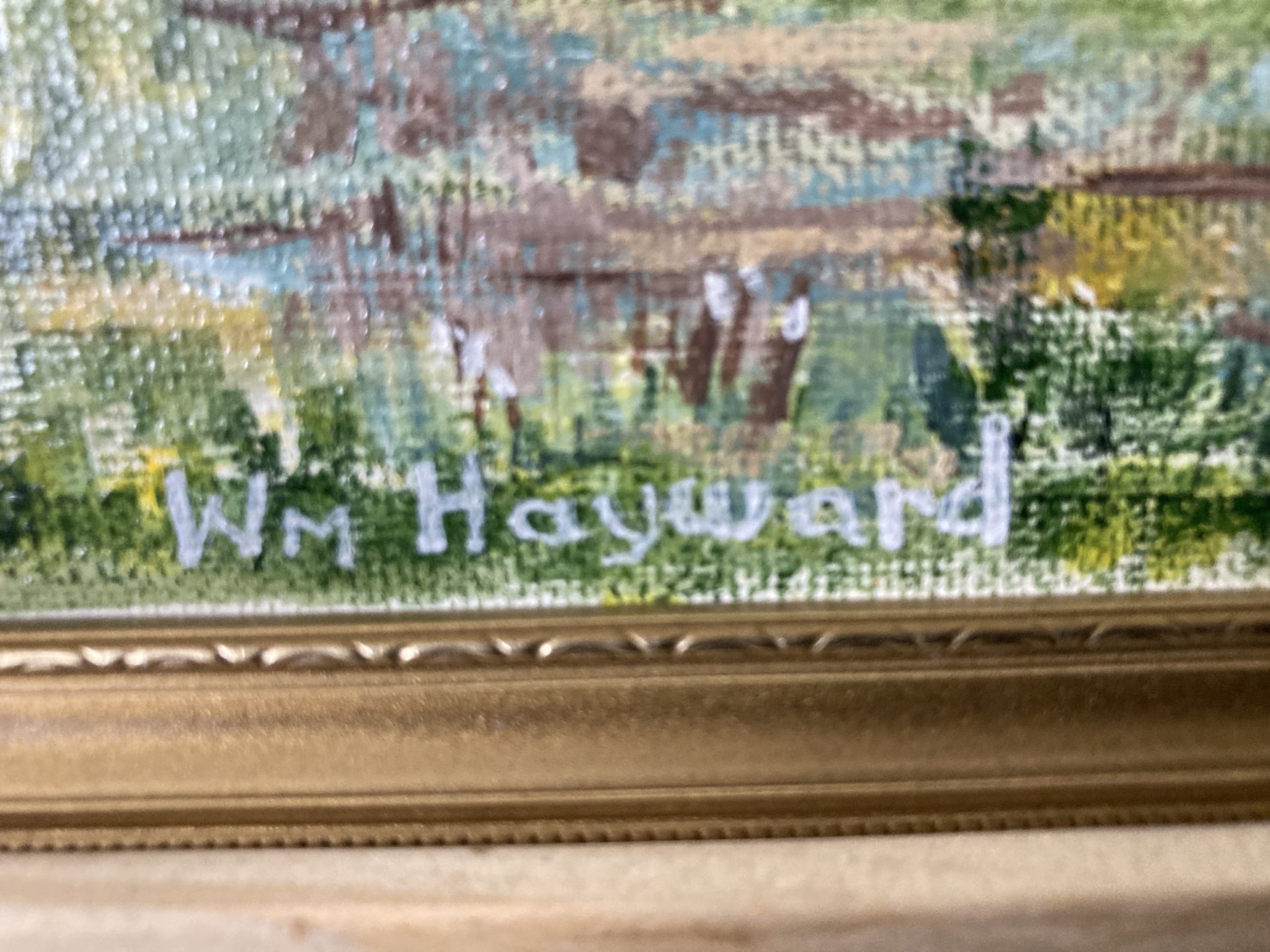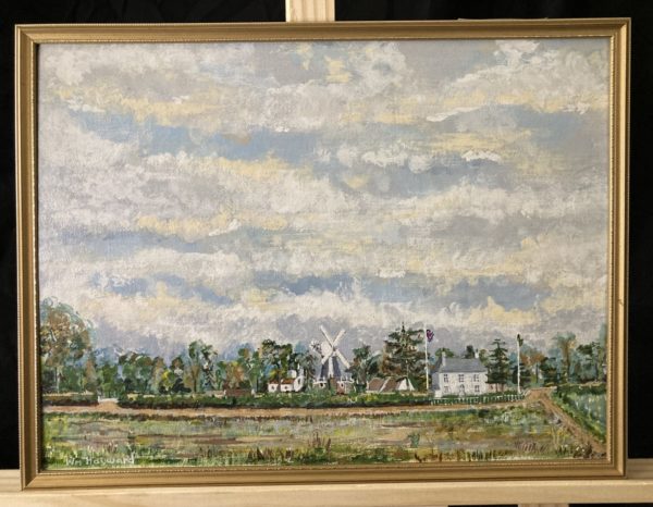 This oil-on-canvas offering of countryside charm includes a coaching inn and windmill.